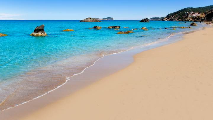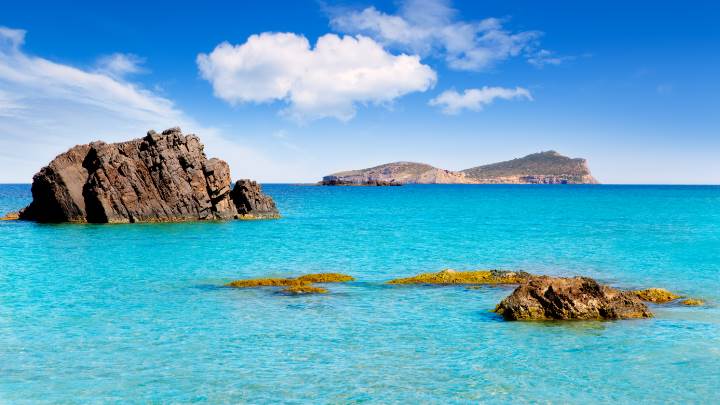S'Aigua Blanca or Aigües Blanques beach is at four kilometres from Sant Carles, between Paller des Camp and es Roig. This sandbank officially is declared as beach as nudist and possesses an excellent panoramic sight from (south) Illa Tagomago up to Top (north) Grossa.