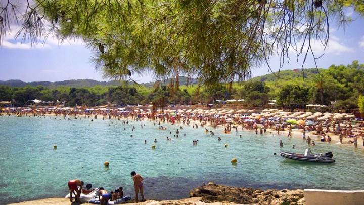 Tip: walk through the pine trees to the mid right of the beach and follow the track away form the beach. After 5 minutes you will come out on to rocks over looking the island of Conejera and an old watch tower that you can walk to. Alternatively scramble up through the woodland at the side of the cafe bar where the ferry boats dock, walk to the right for about 3 minutes and you'll come across the Hermit's Garden full of religous creations.