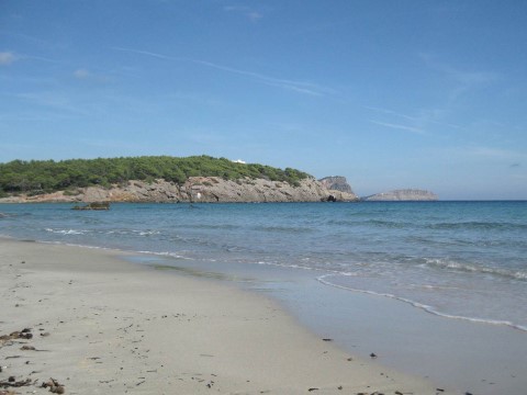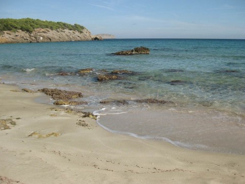 Located in a privileged spot, at 5 kilometers from Santa Eulalia, Cala Nova beach has fine sand and extremely clear waters, surrounded by pines and dunes.