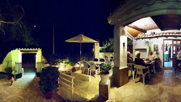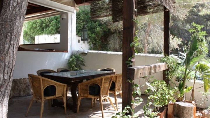 residencial de Can Germa (San Antonio). La gran terraza bajo los pinos y