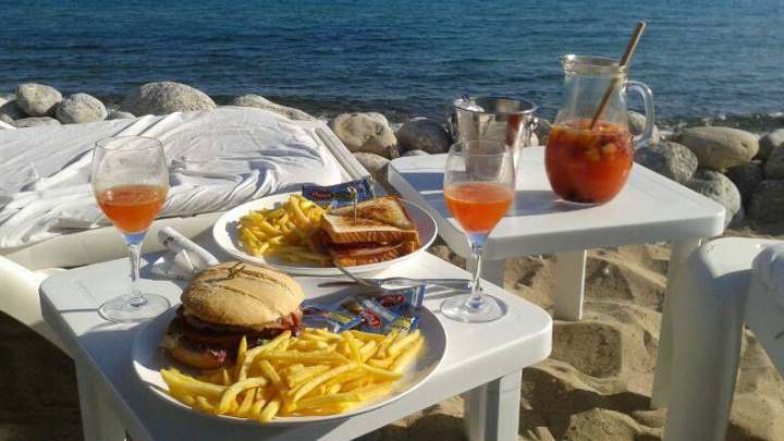 Un restaurante ideal para pasar momentos llenos de luz y risas con los amigos, relajarse (de verdad) y disfrutar de la apacible brisa que llega del Mediterráneo, literalmente situado a unos metros de las tumbonas que se pueden encontrar un poco más allá de las mesas del restaurante..